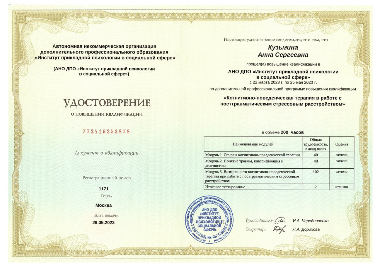 «Когнитивно-поведенческая терапия в работе с посттравматическим стрессовым расстройством» (повышение квалификации)
