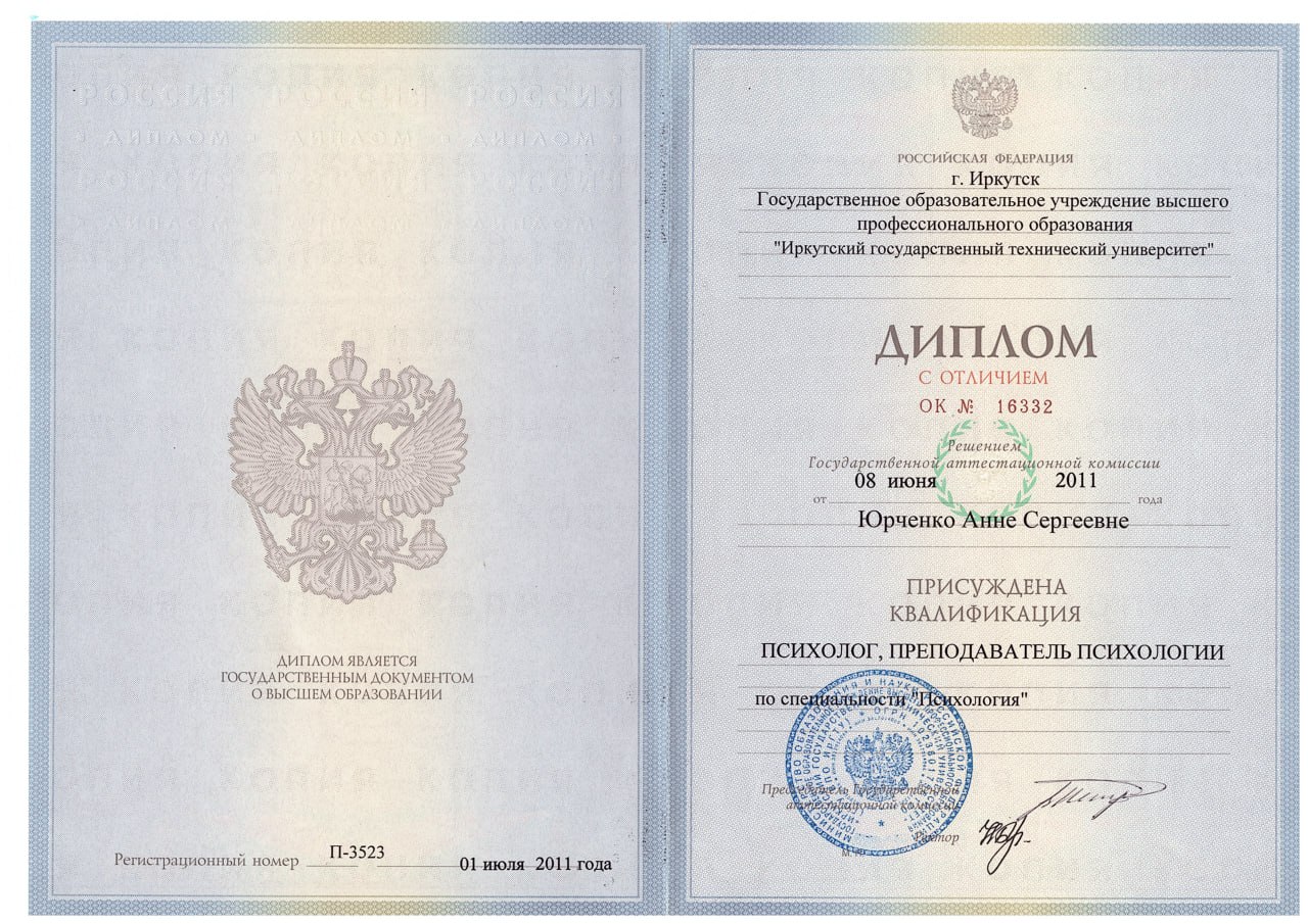 Высшее психологическое, квалификация – психолог, преподаватель психологии